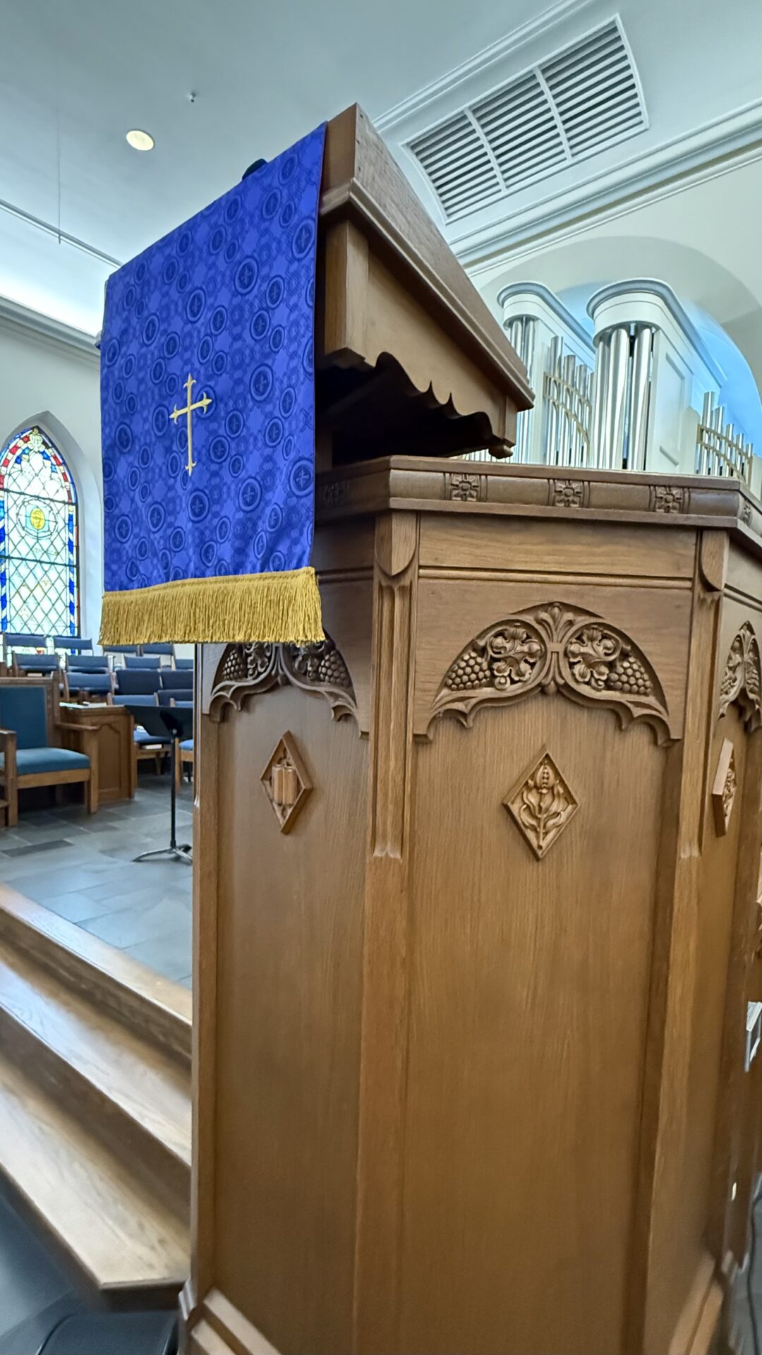 The photo above of the pulpit of the Waldensian Presbyterian Church in Valdese, North Carolina, was taken by Matt Matthews.
